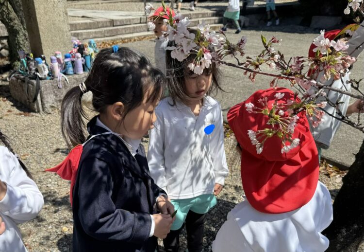 お友達や先生と鬼ごっこをしたり、桜を拾って「きれいでしょ!」とお話ししてくれました🥰
