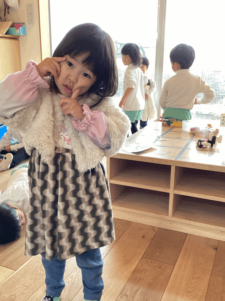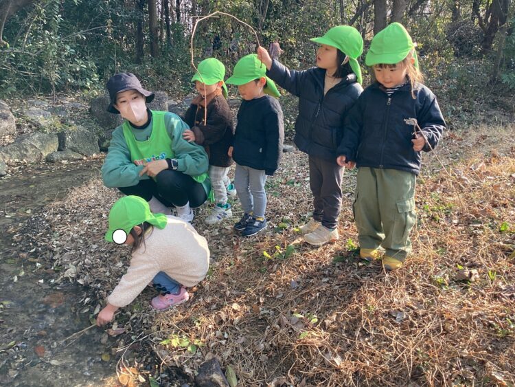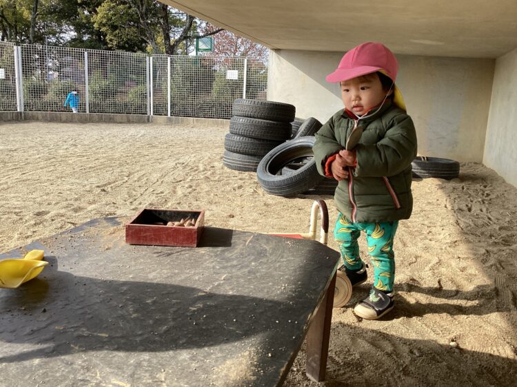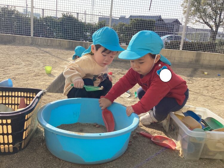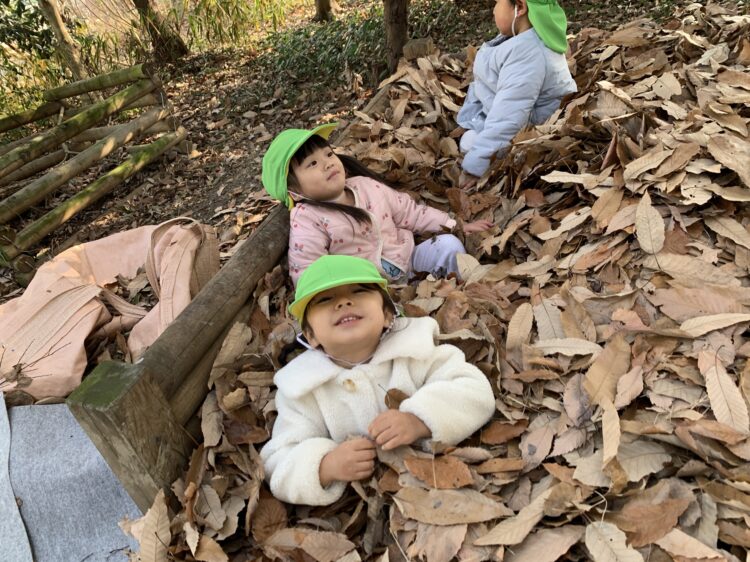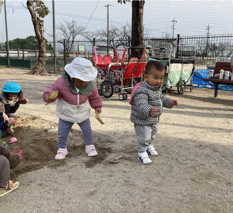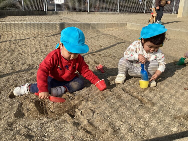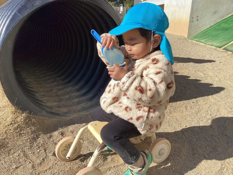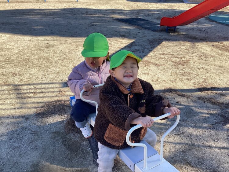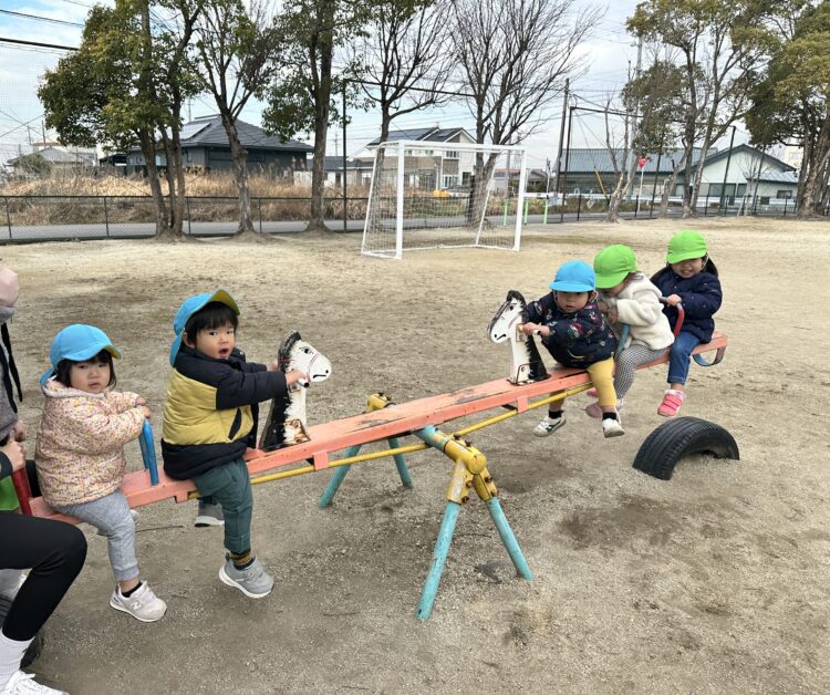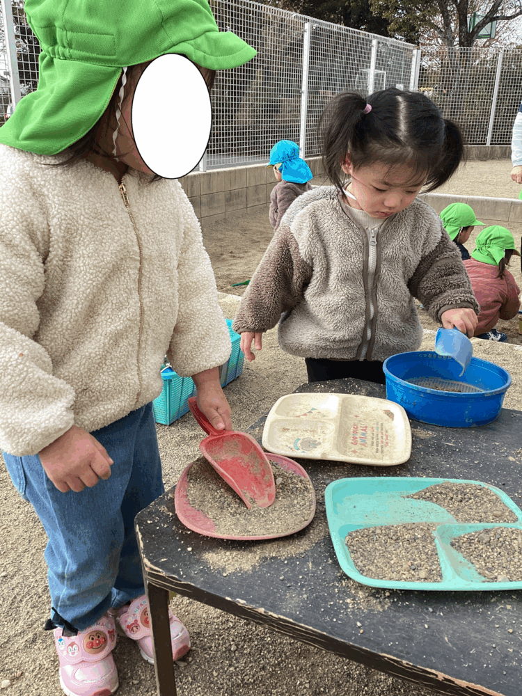 遊んでいる途中であられが降ってきましたが、寒さにまけずみんな元気いっぱいです