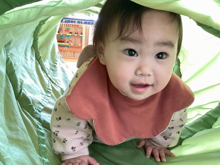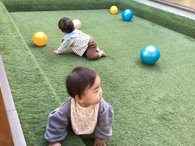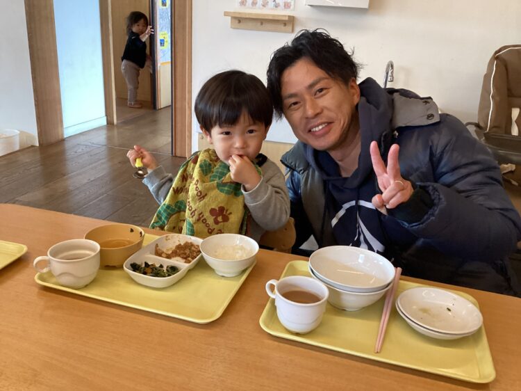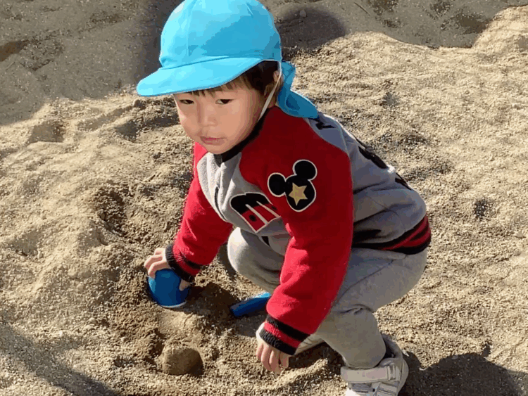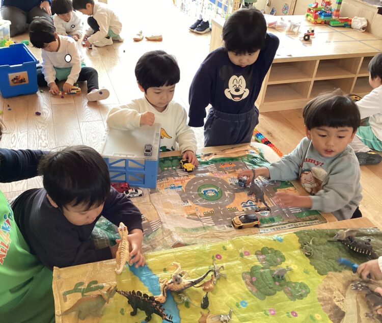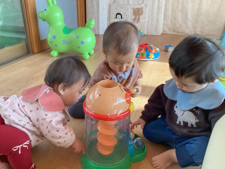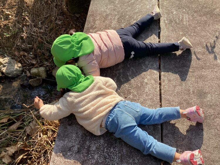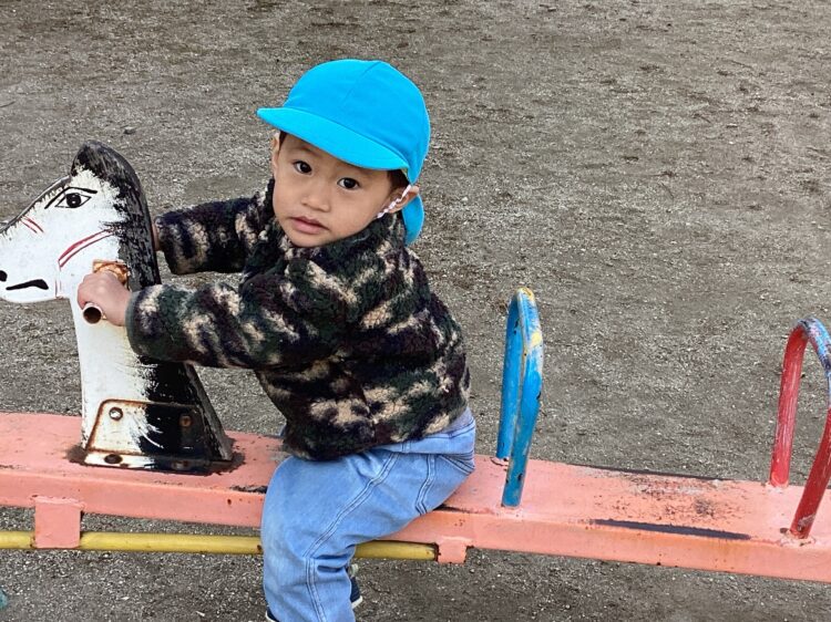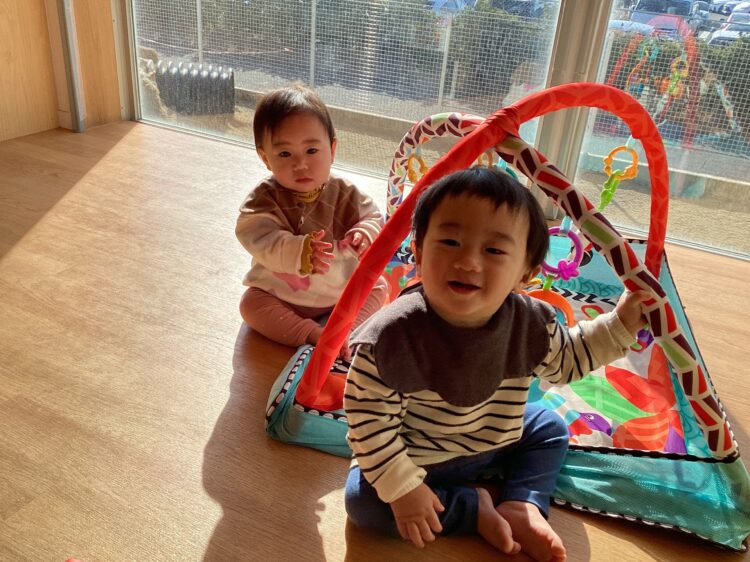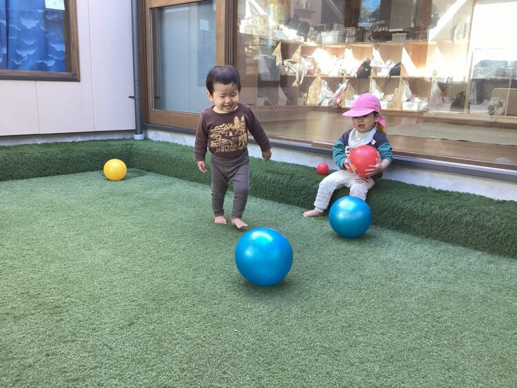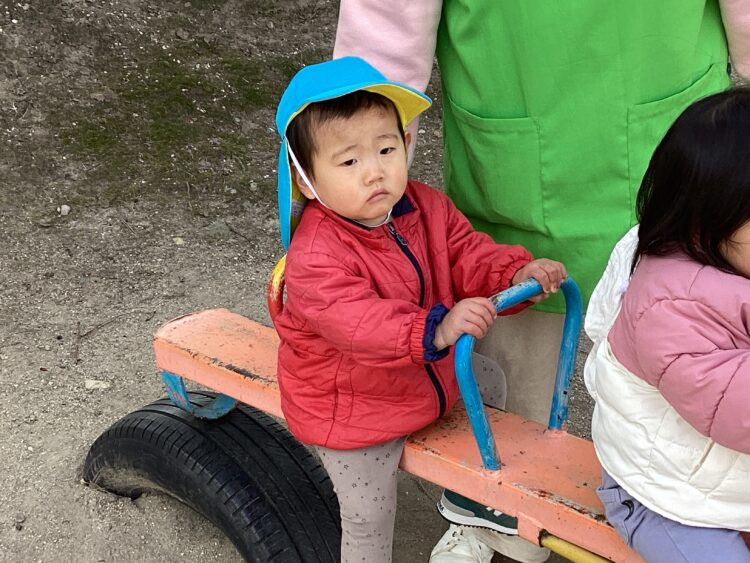 遊んでいる途中であられが降ってきましたが、寒さにまけずみんな元気いっぱいです