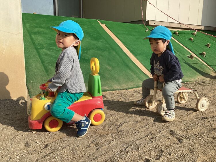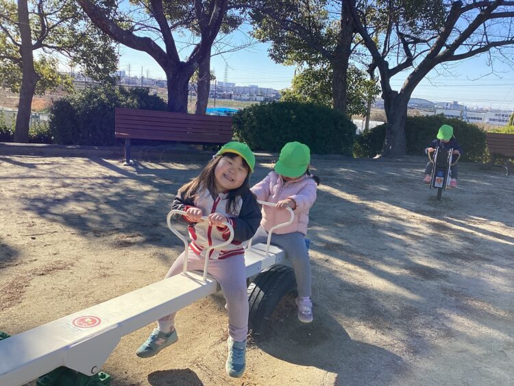 お友だちと手を繋いで「しゅっぱつしんこ~~~う!」元気に出発です