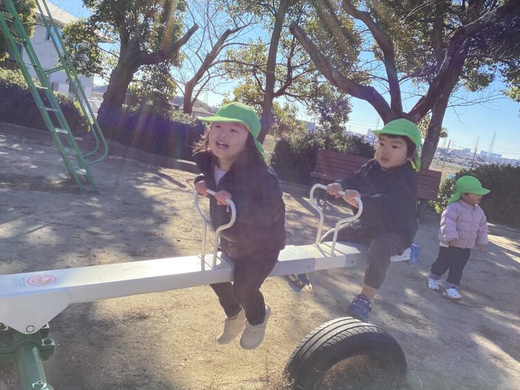 今日は、花池公園チームと園庭でチームに分かれて遊びました!