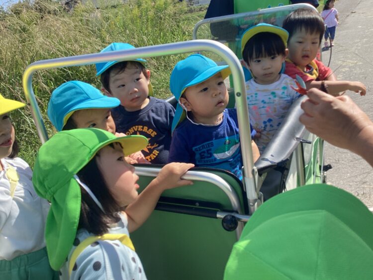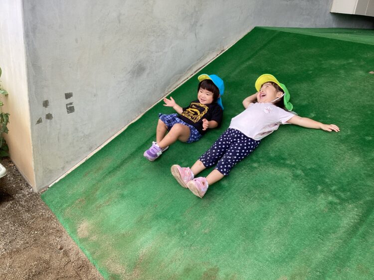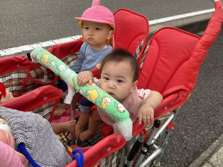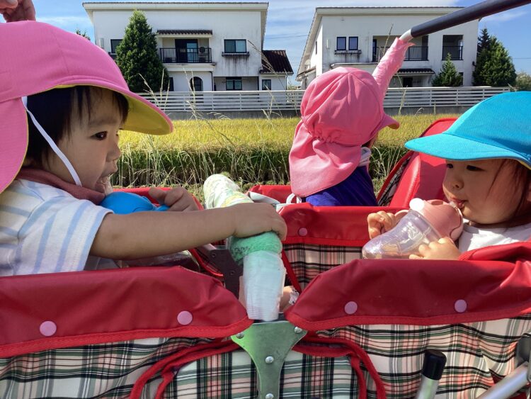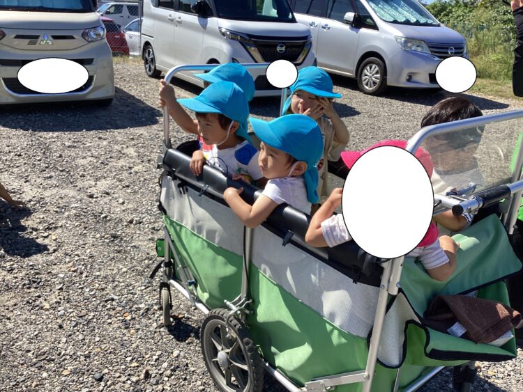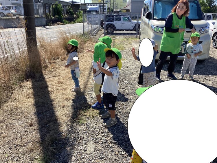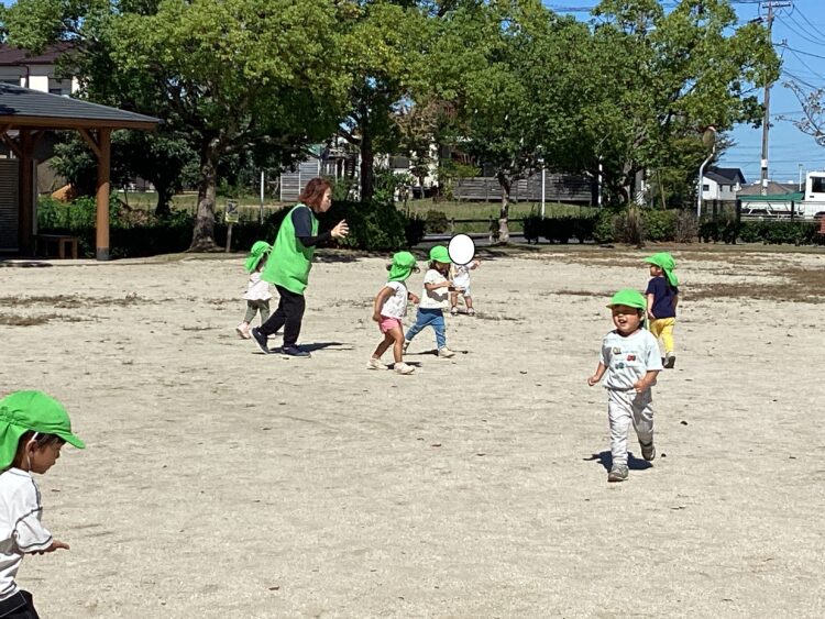 今日はいいお天気だったので園外にでて遊びました