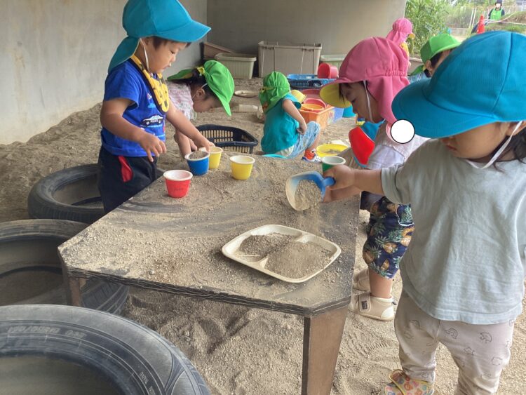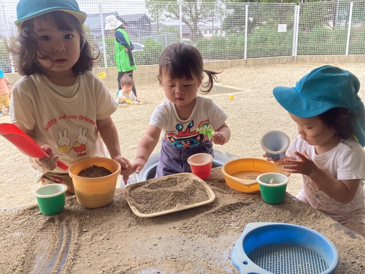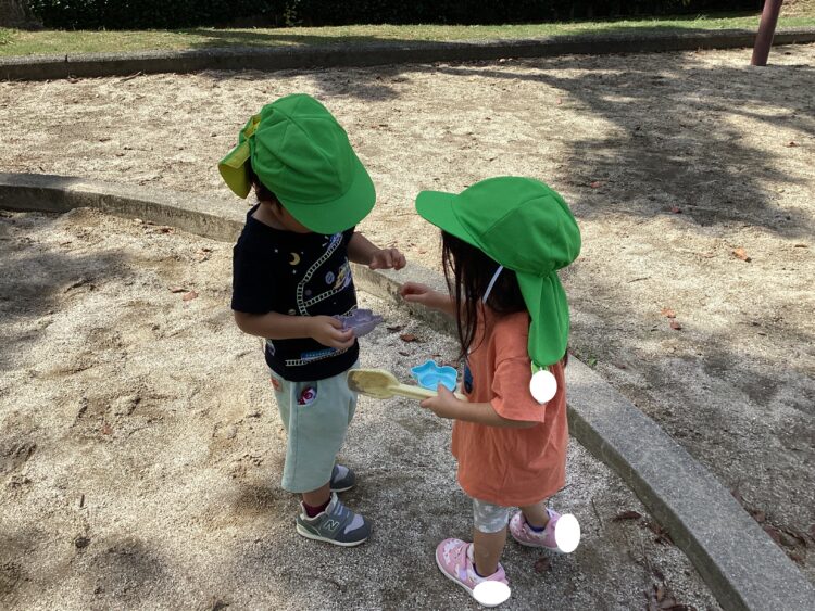 こちらは砂場で何やらお話し中![]()