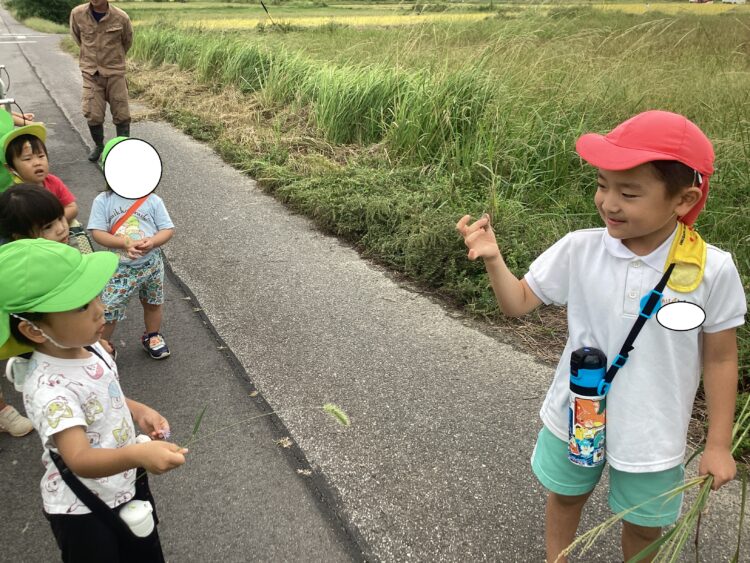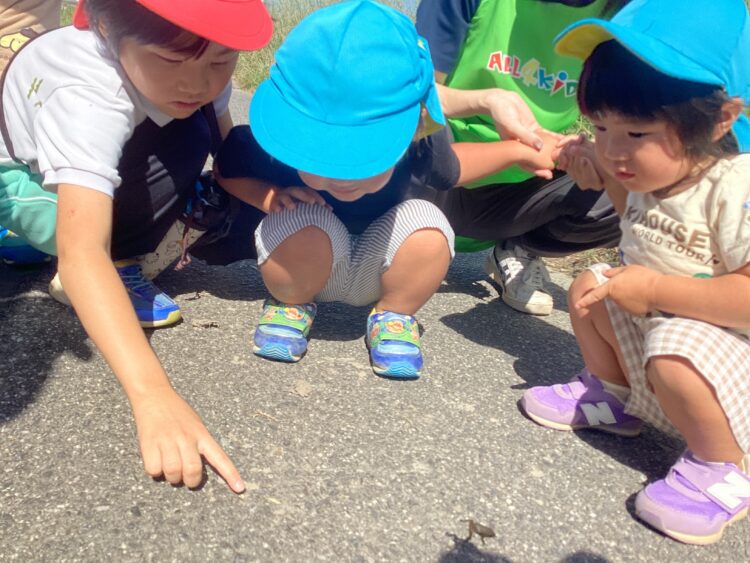 お兄さんが何か捕まえたみたいです!お友だちは興味津々![]()