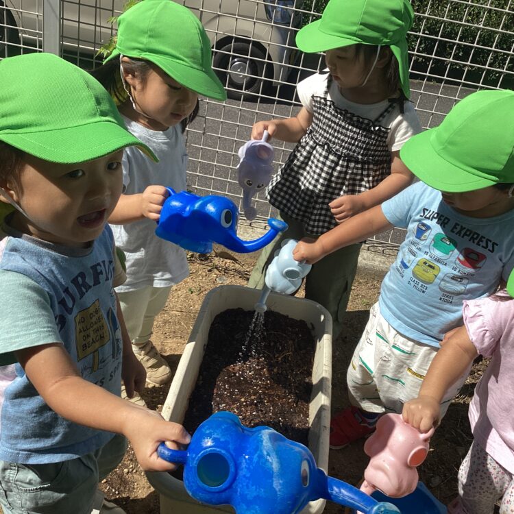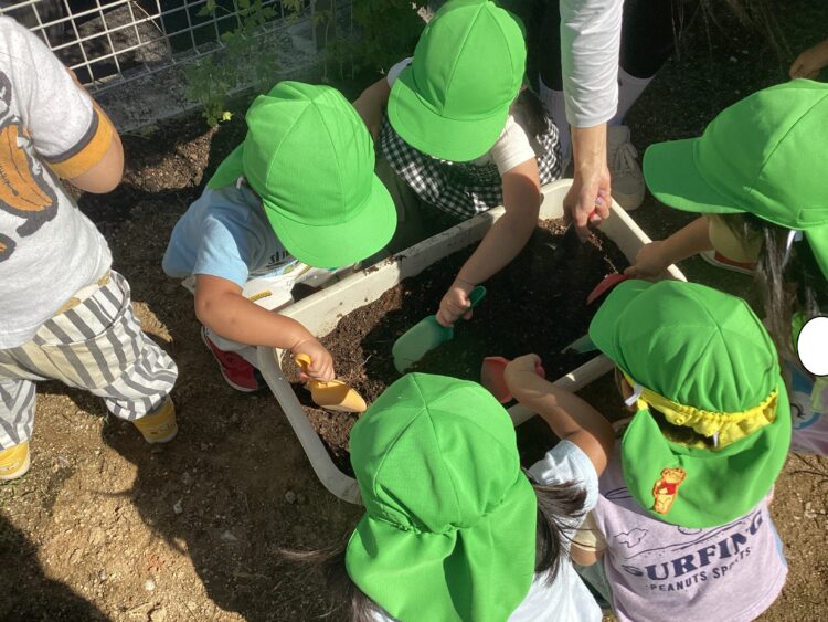 今日は園庭で冬野菜を植えました![]()