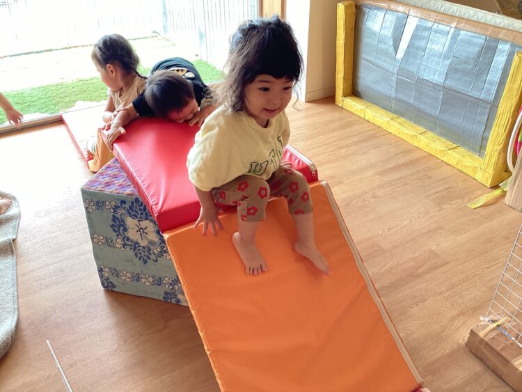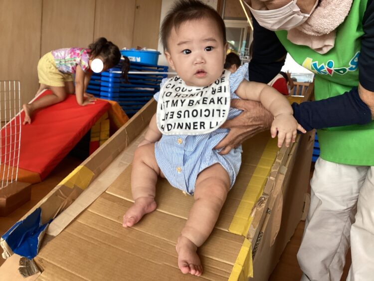 小さいお友だちも保育者のお手伝いで滑り台に挑戦![]()