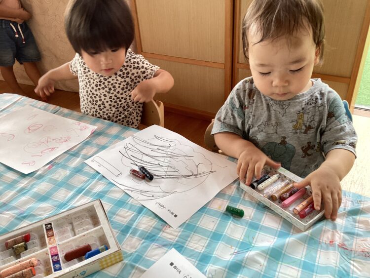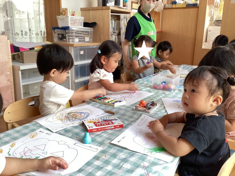 お部屋ではお絵描きに夢中な子どもたち![]()