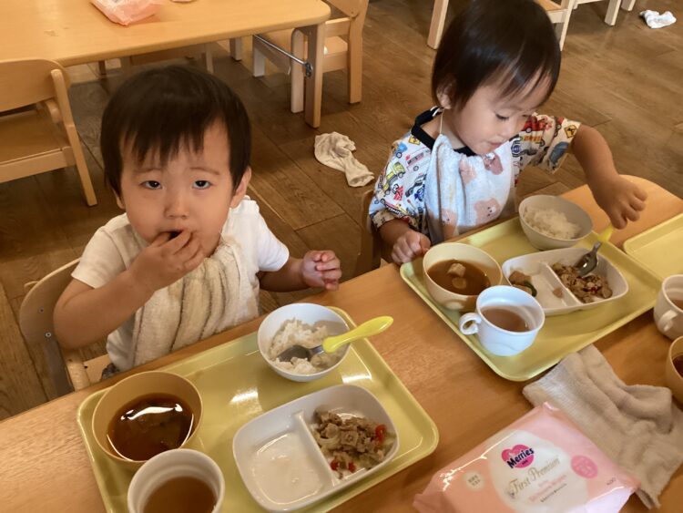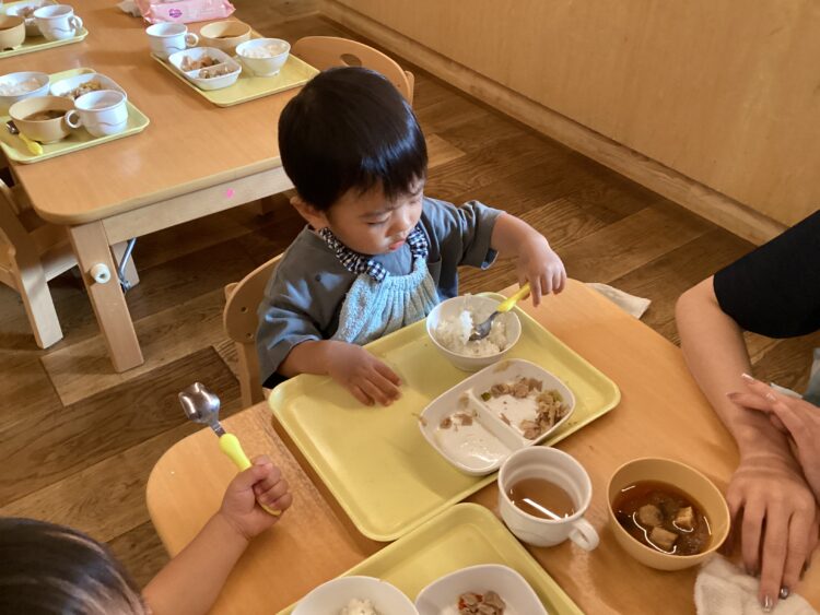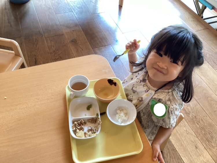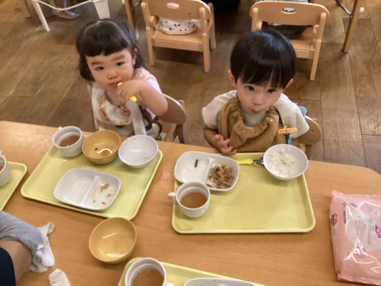 たくさん遊んだ後は美味しいお給食![]()