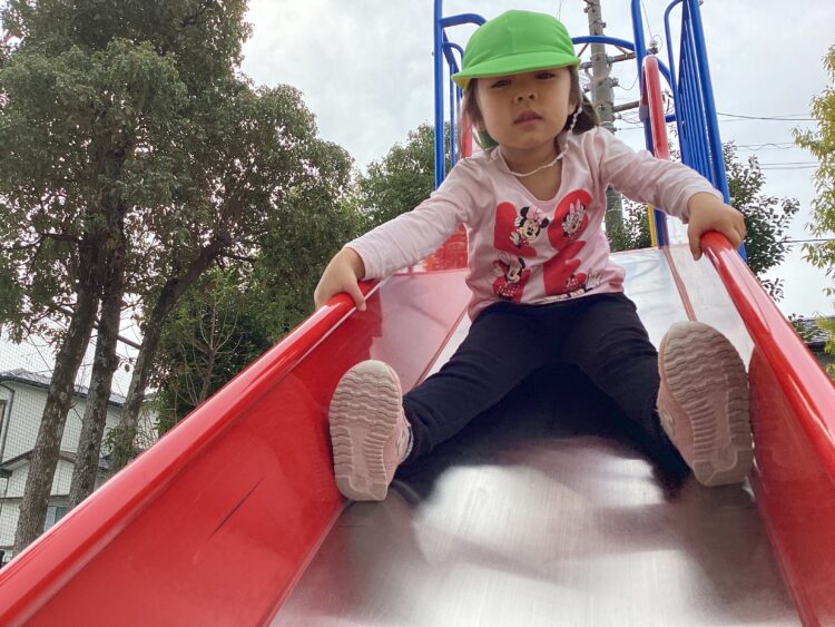 保育園で大人気の「へんなかお」の絵本。公園でも変な顔しました![]()