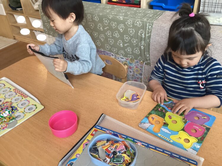「何色にしようかな?」好きな色を選んで塗っています![]()