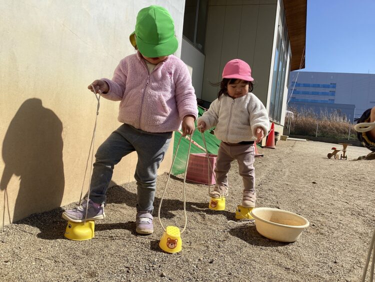 園庭チームさんもコンビカーやお砂場、しゃぼん玉など楽しんでいました![]()