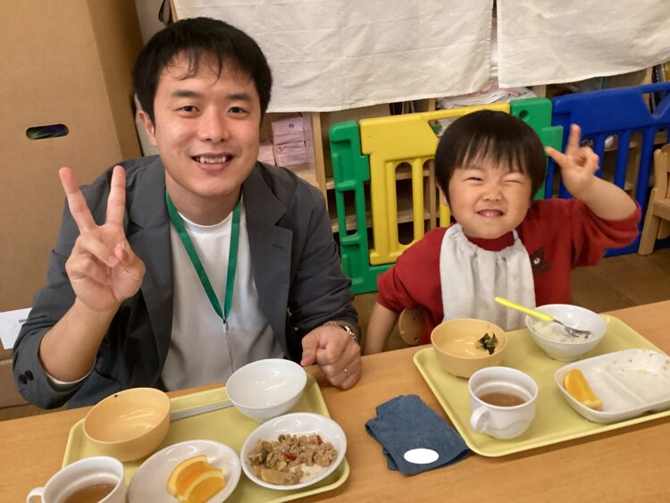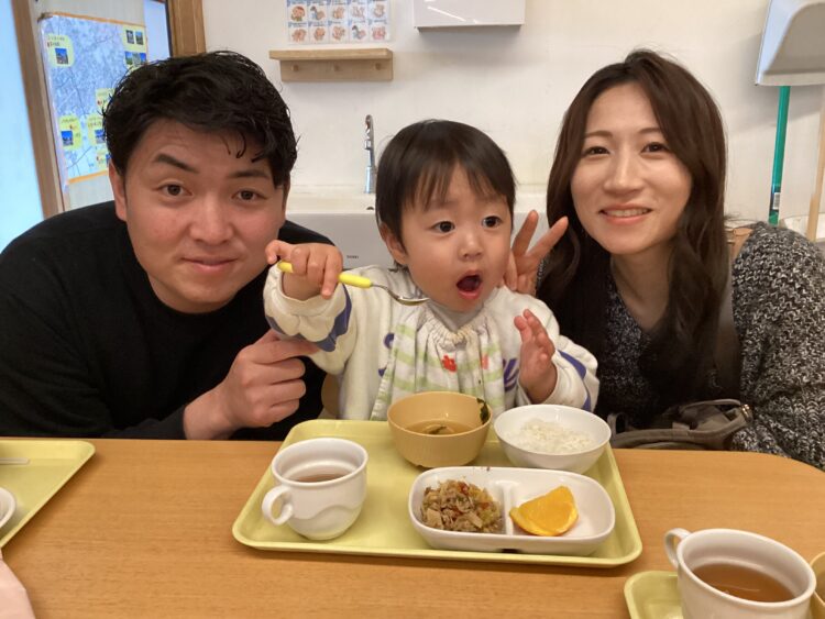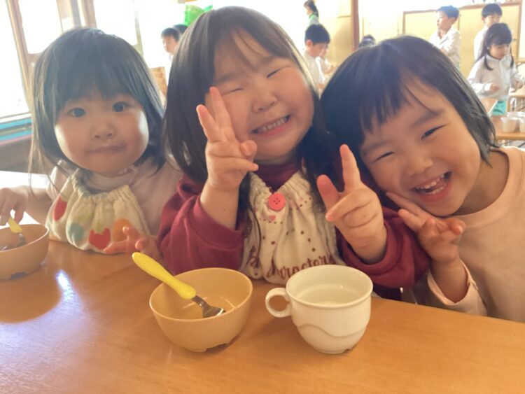 給食の所でも美味しくて笑顔のお友だちが![]()