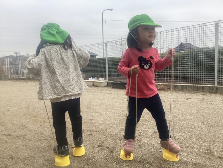 今日は幼児園庭で遊びました!