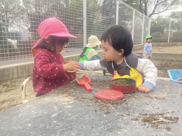 大好きなお砂場ではお友だちと楽しむ姿が![]()
