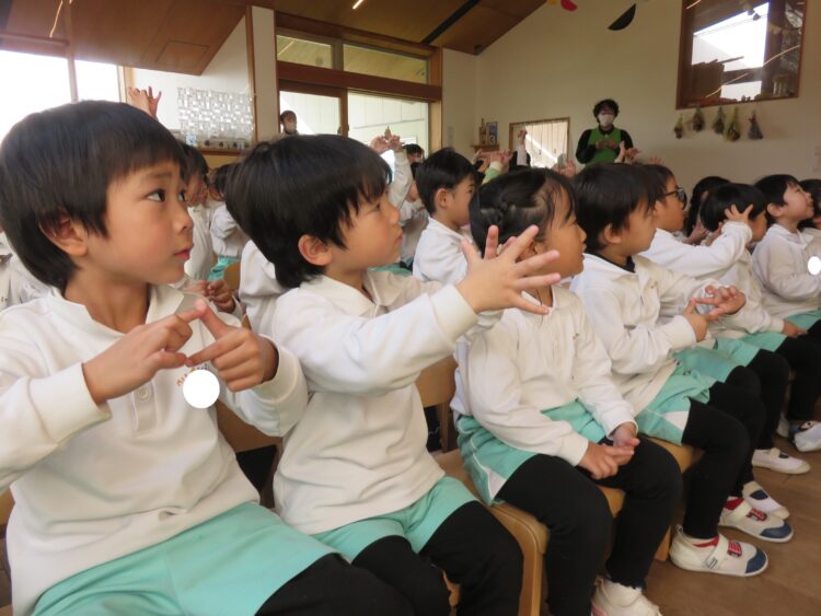 グーチョキパーのEnglishバージョン、蜘蛛の手遊びなど、いろいろな手遊びを楽しみました![]()