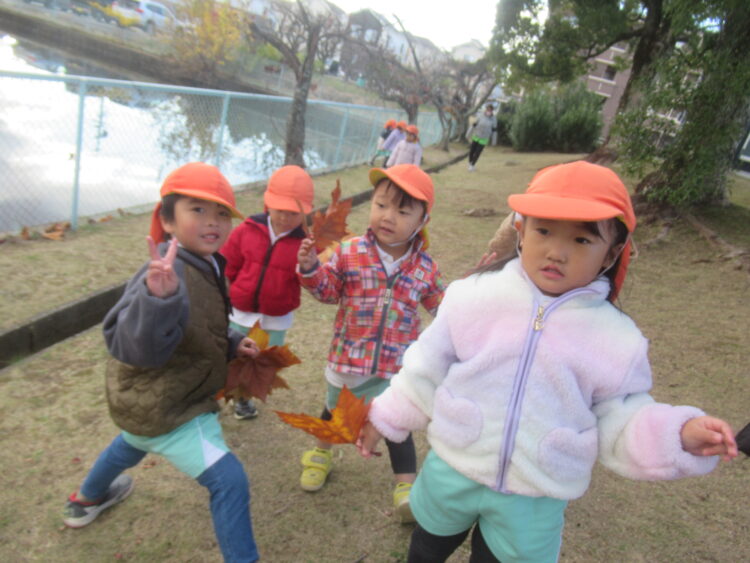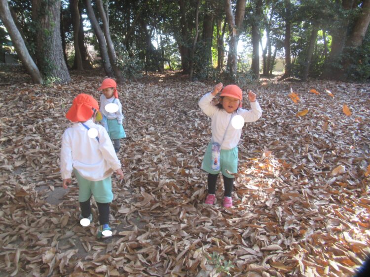 落ち葉を投げるなど、秋が暑くて出来なかった遊びを少しずつ回収です🍂