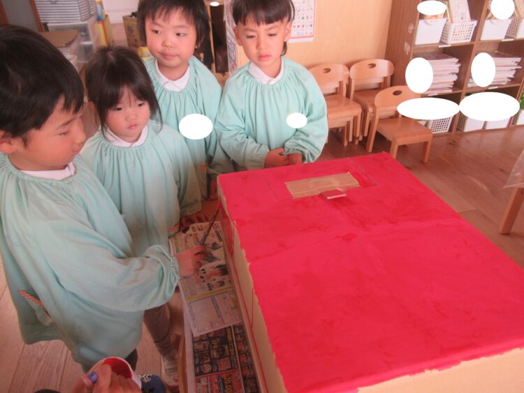 どきどきさん、わくわくさんはお餅つき会で使う郵便ポストを作る下見に行きました📮