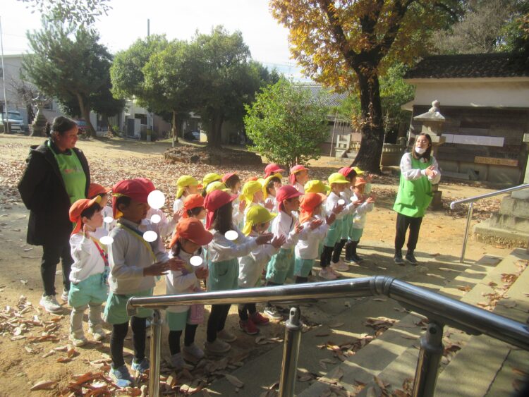 今日は、だいちチームとやまチームのお友だちが今岡神社に行きました
