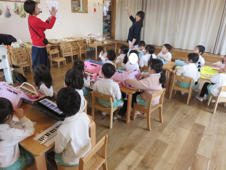 園長先生や講師の先生と一緒に真剣なまなざしで活動していました