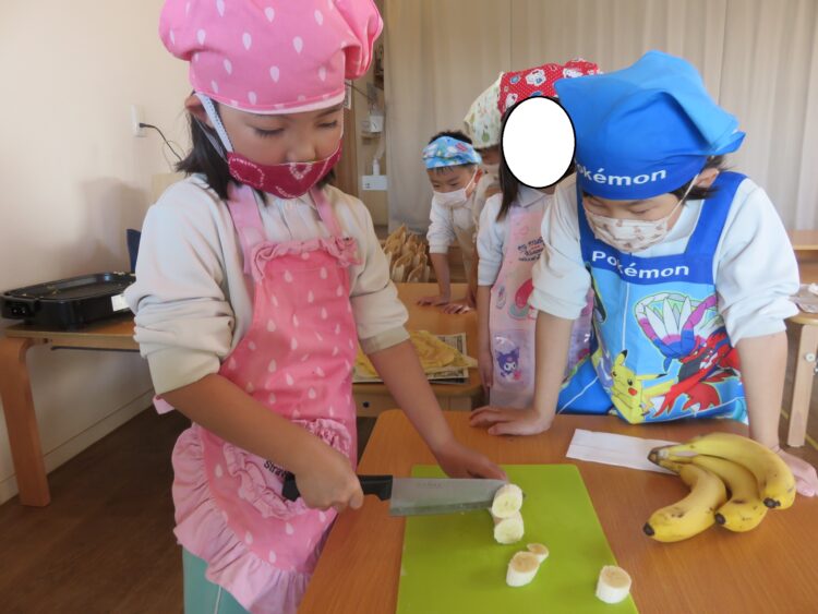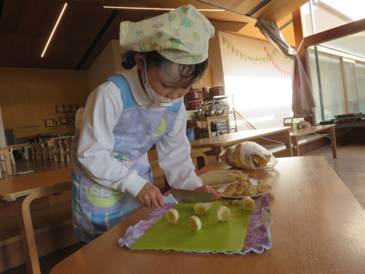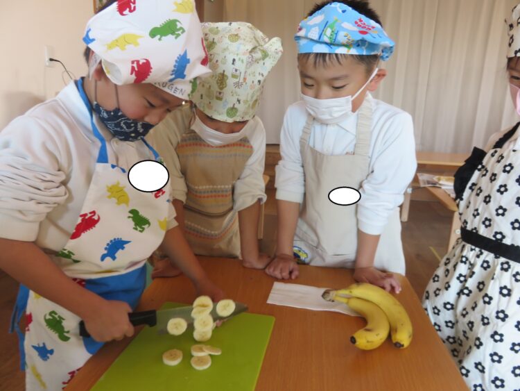 きらきらさんは、包丁でバナナを切りました!