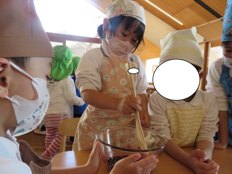 混ぜる姿は、真剣そのものですね!
