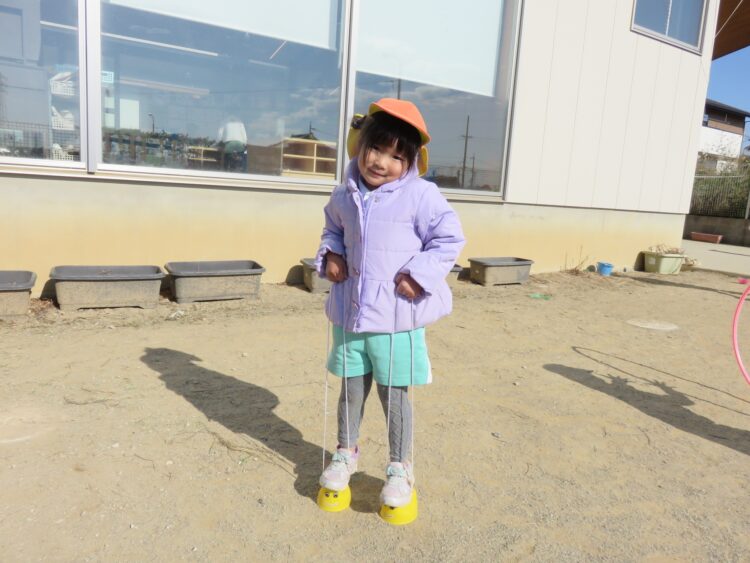 園庭では、ぽっくりが大人気!