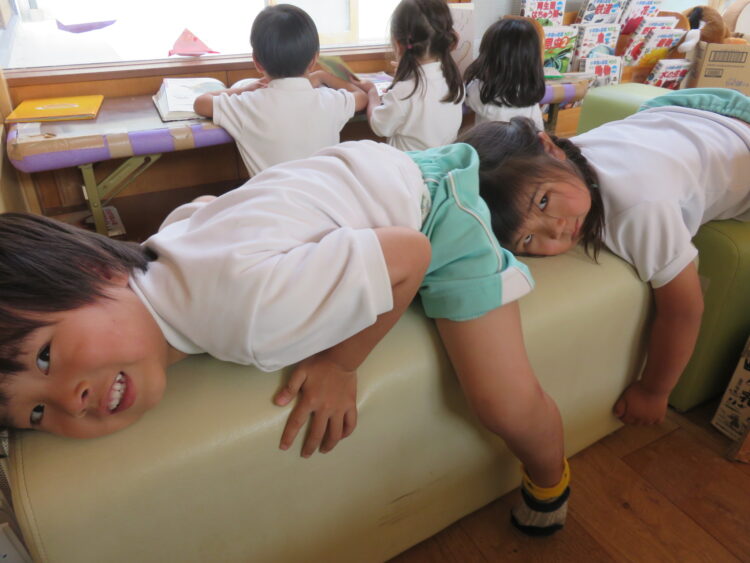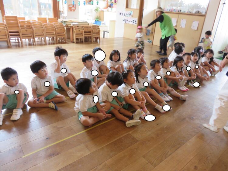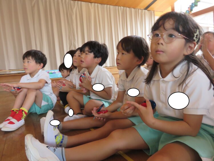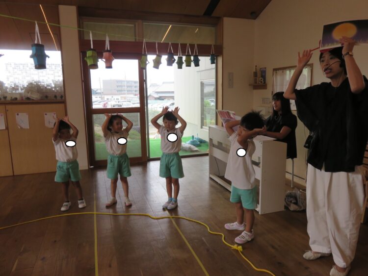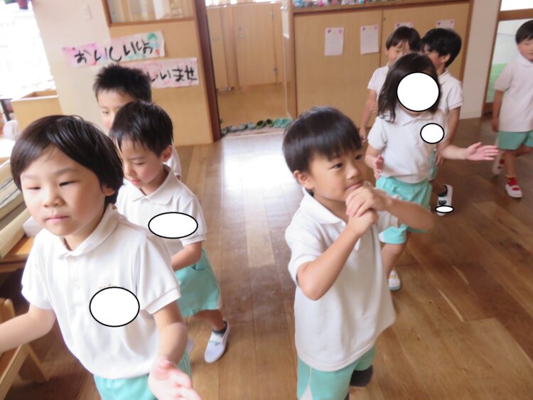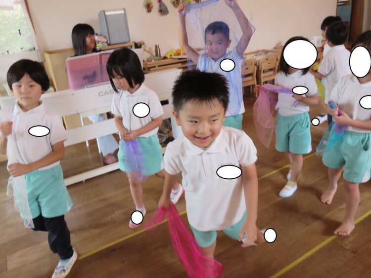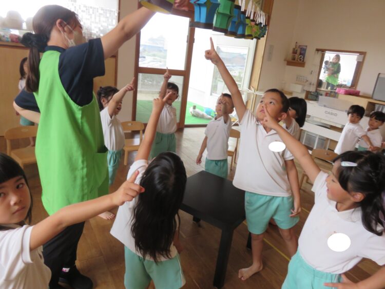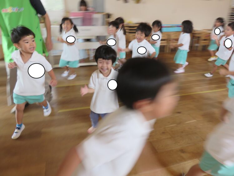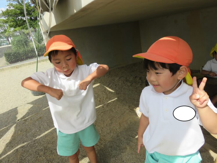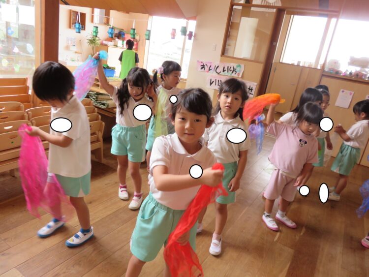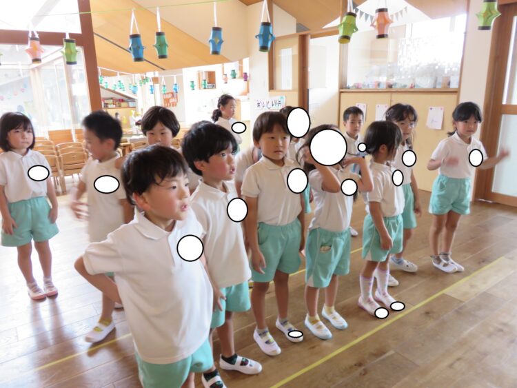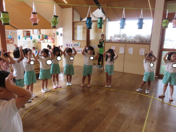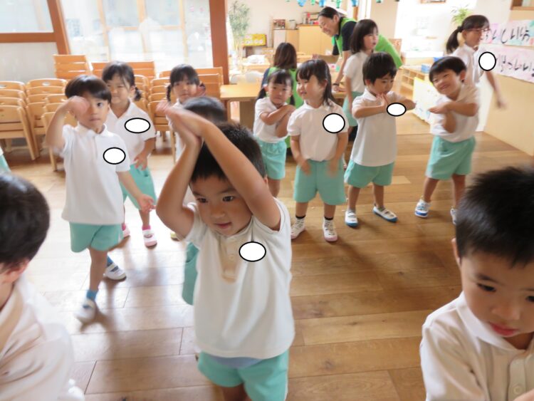 「アンパンマン音頭」「パプリカぼんおどり」どちらも振り付けを覚えて、張り切って踊っています。明日は大好きなお家の方と一緒に踊ろうね