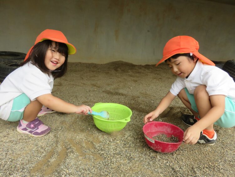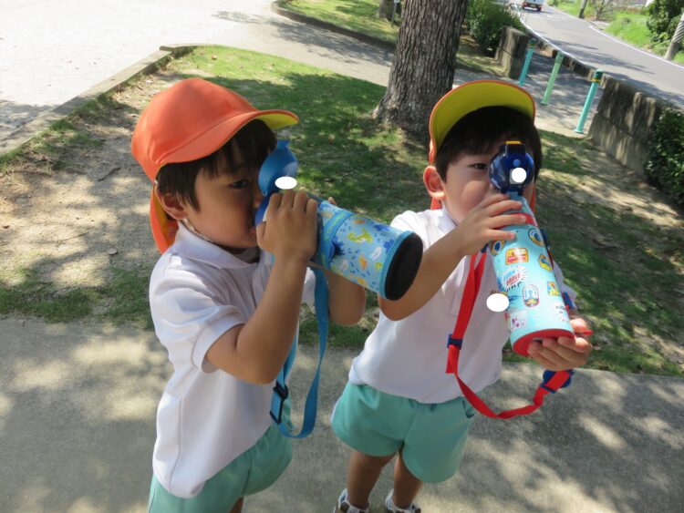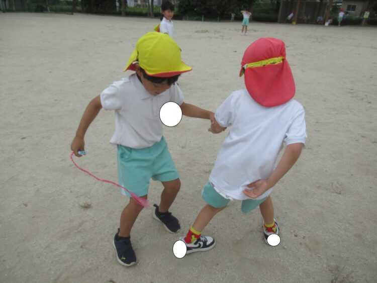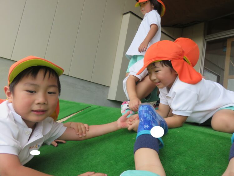坂を登ったり下ったり、友だちが落ちないように手を引き、助け合う姿も見られました!