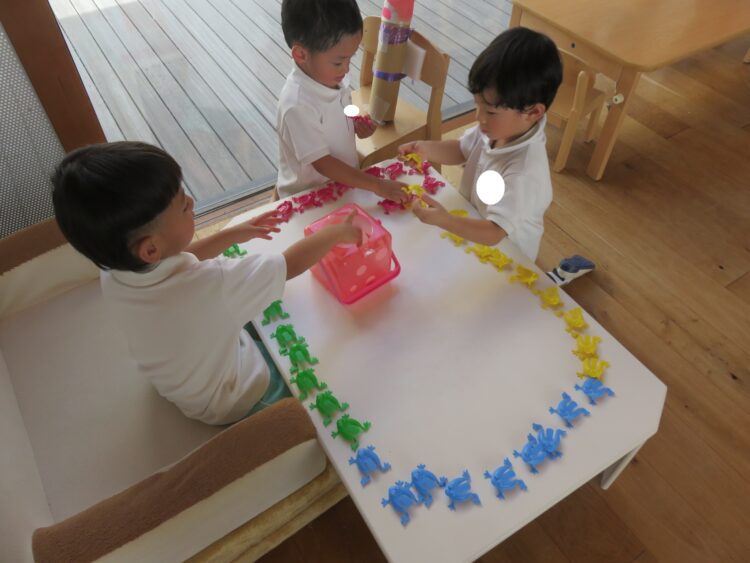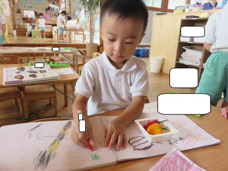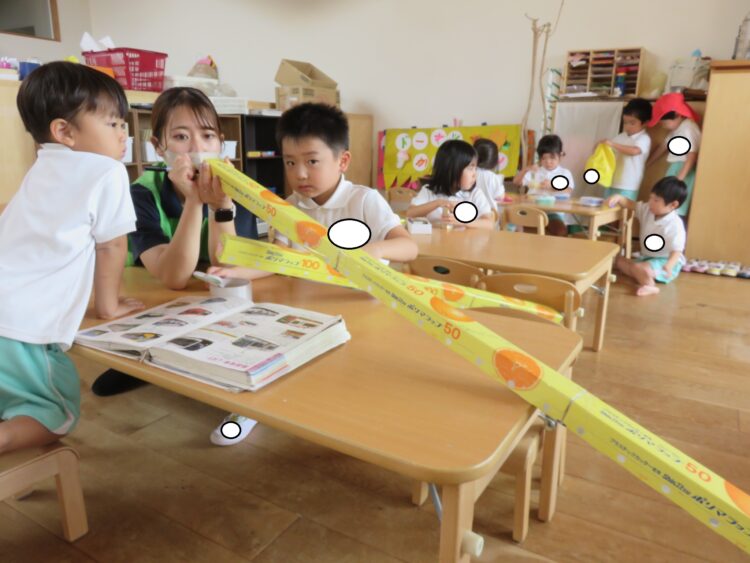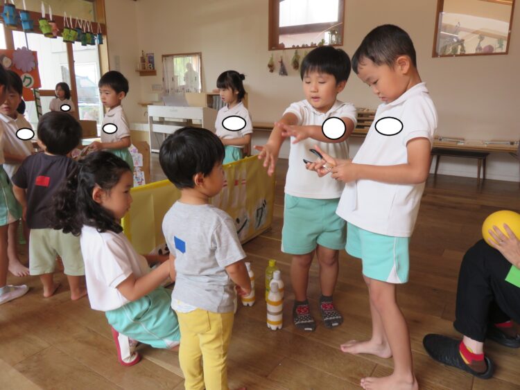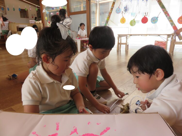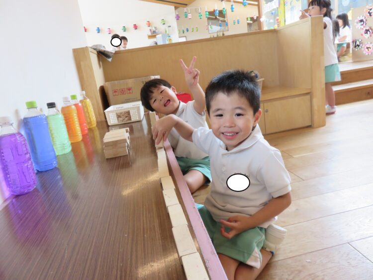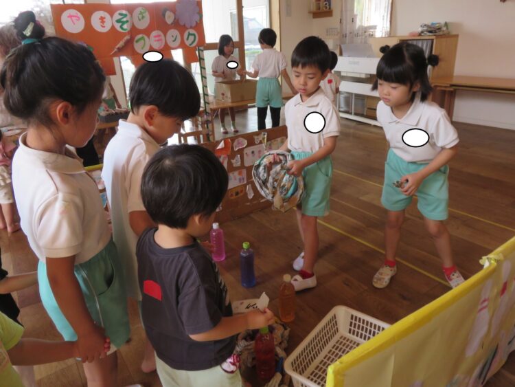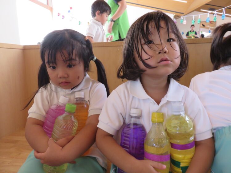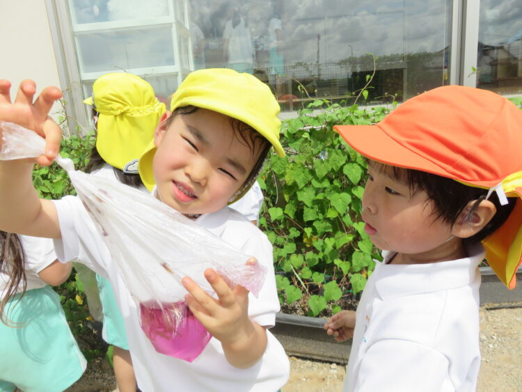 「先生、見て~!」「むらさきになったよ!」「ぶどうジュースみたい🍇」