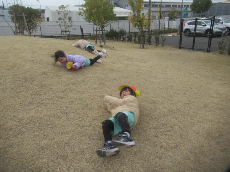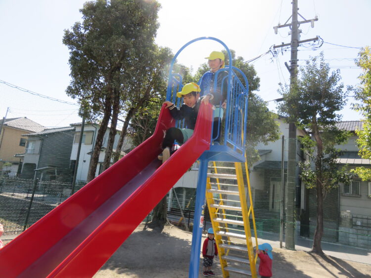 回転遊具やシーソーなど、好きな遊具で遊びました。