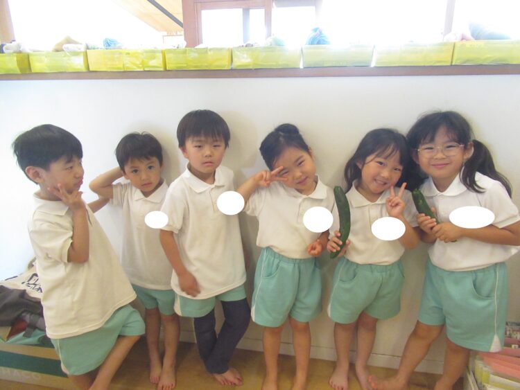グループごとに育てている夏野菜も元気に育っていますよ🥒
