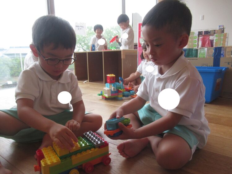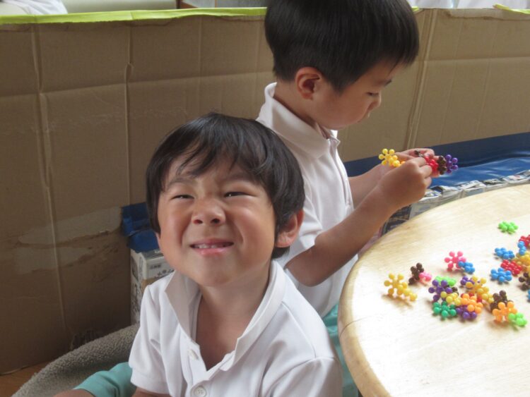 お友だちと一緒にお部屋でゆったりと遊んでいます![]()