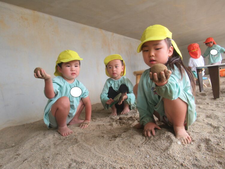 泥んこでご飯を作ったり、泥団子を作ったりして楽しみました!