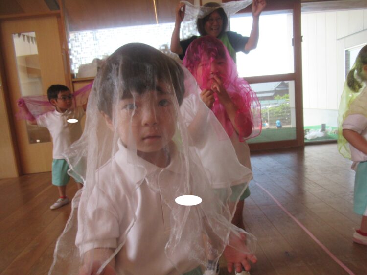 シフォンを傘に見立てて楽しかったね!