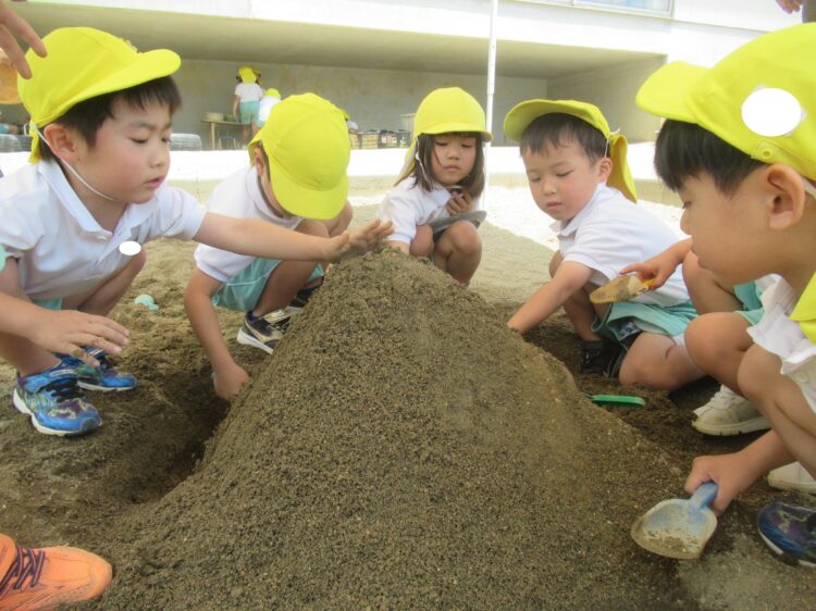 どきどきさんは、おおきな砂山を作っていましたよ![]()