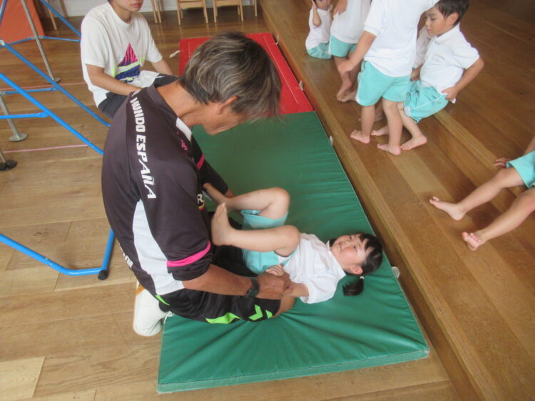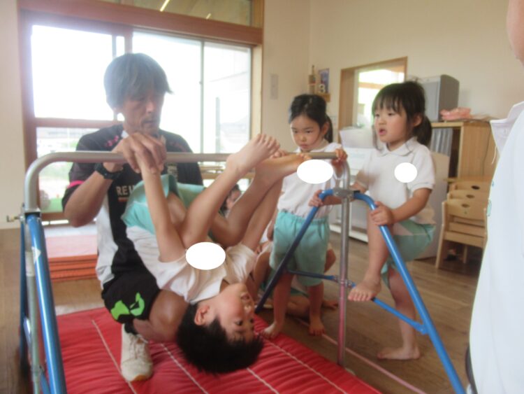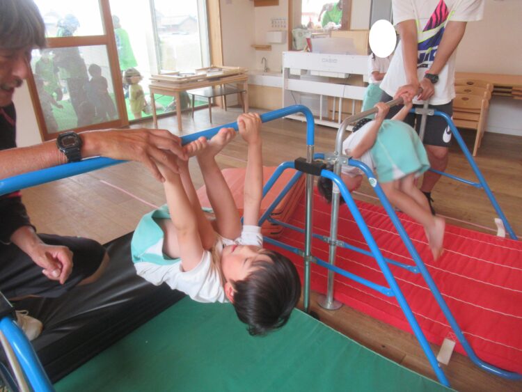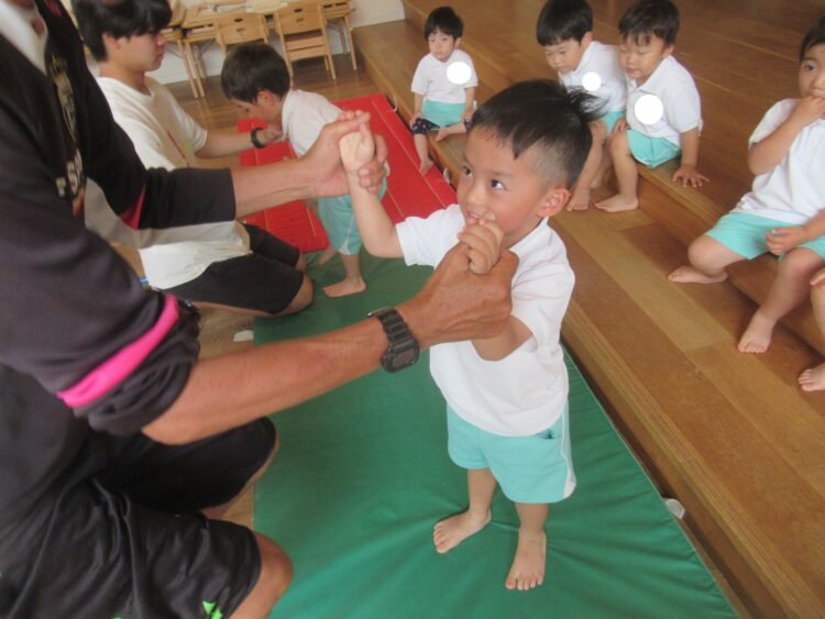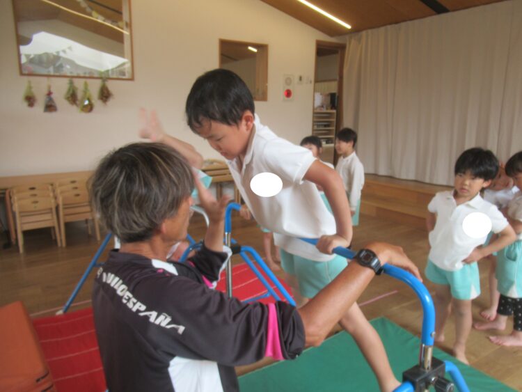 わくわくさんも鉄棒に向けて先生たちと足抜きまわりの練習です!!!
