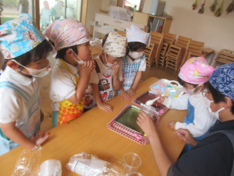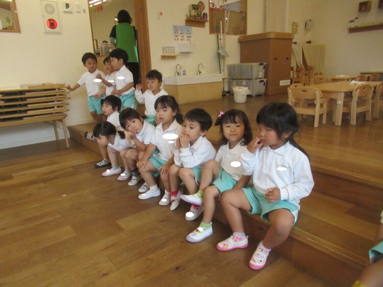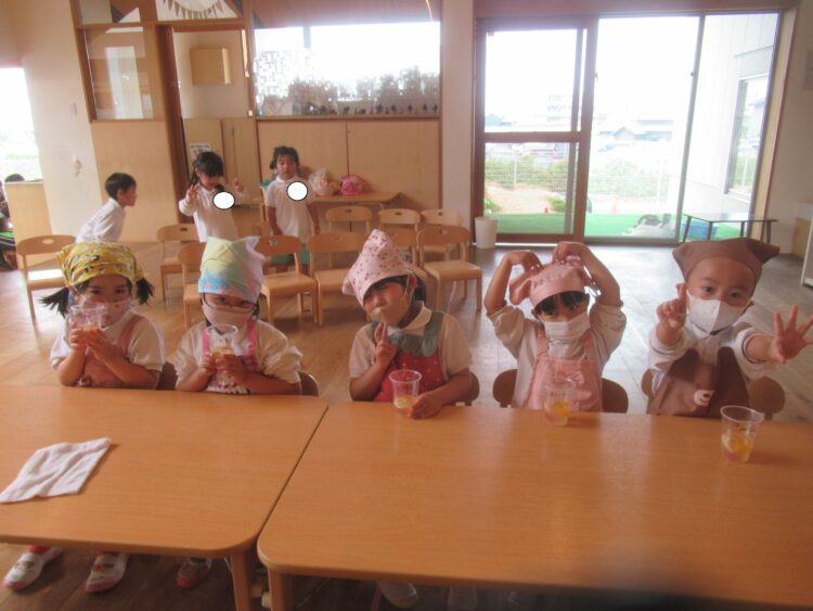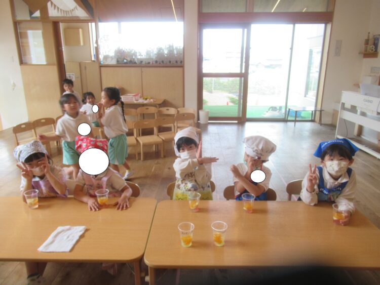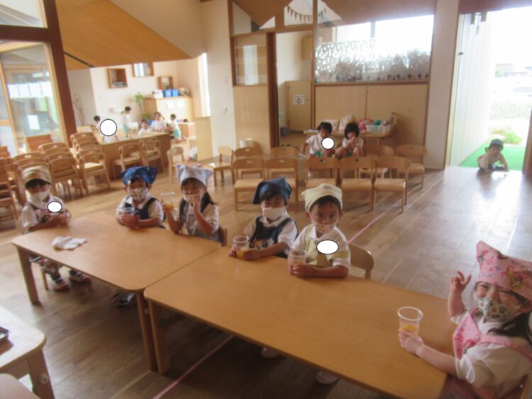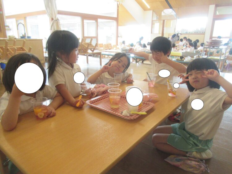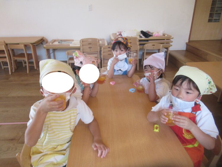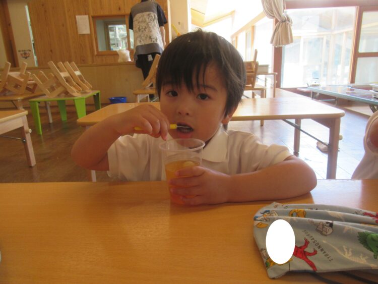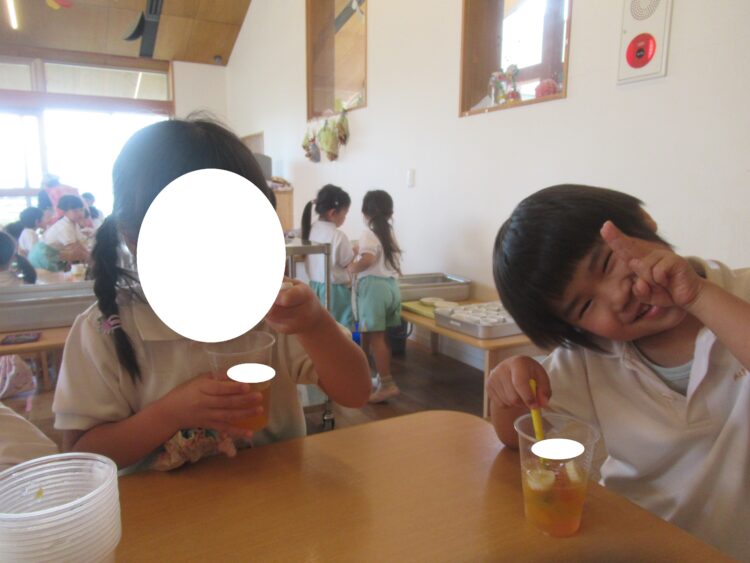 給食の後、みんなで食べました!