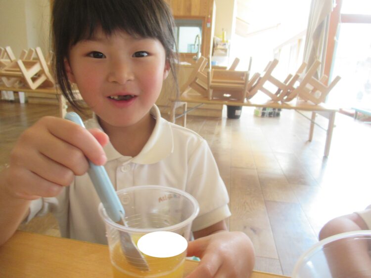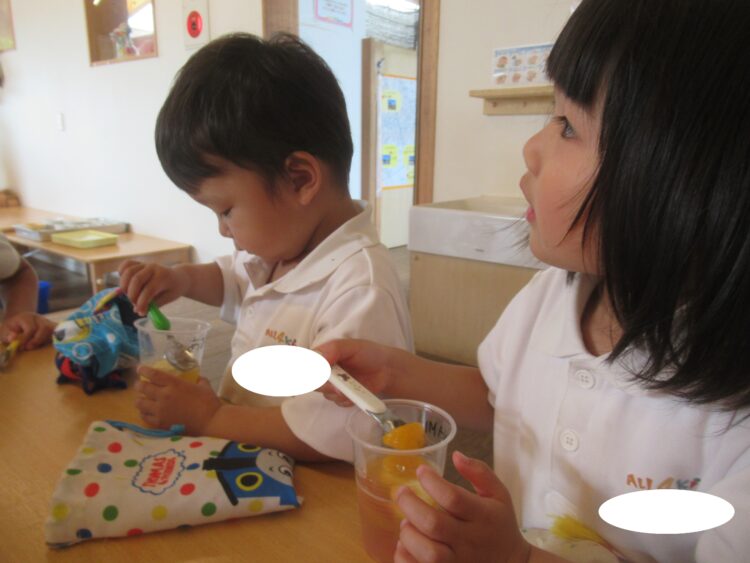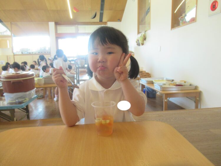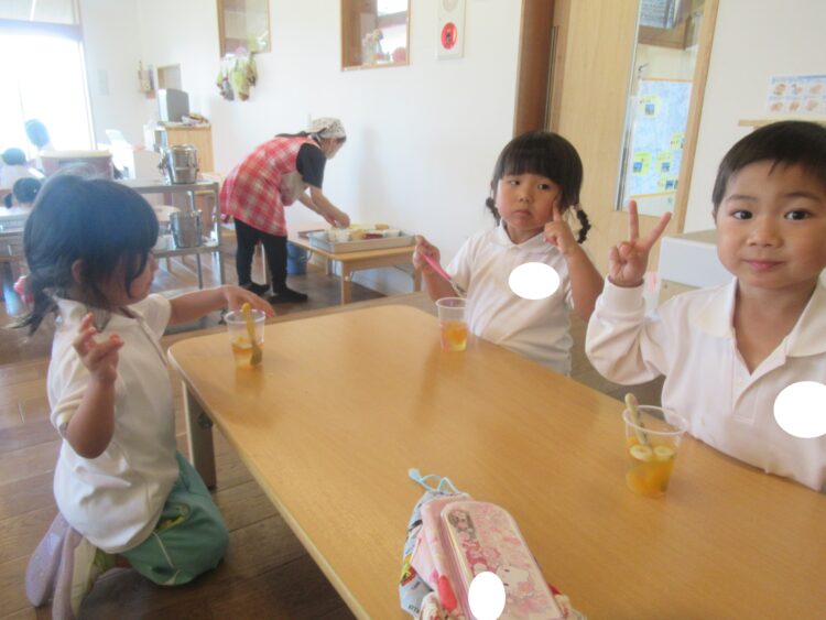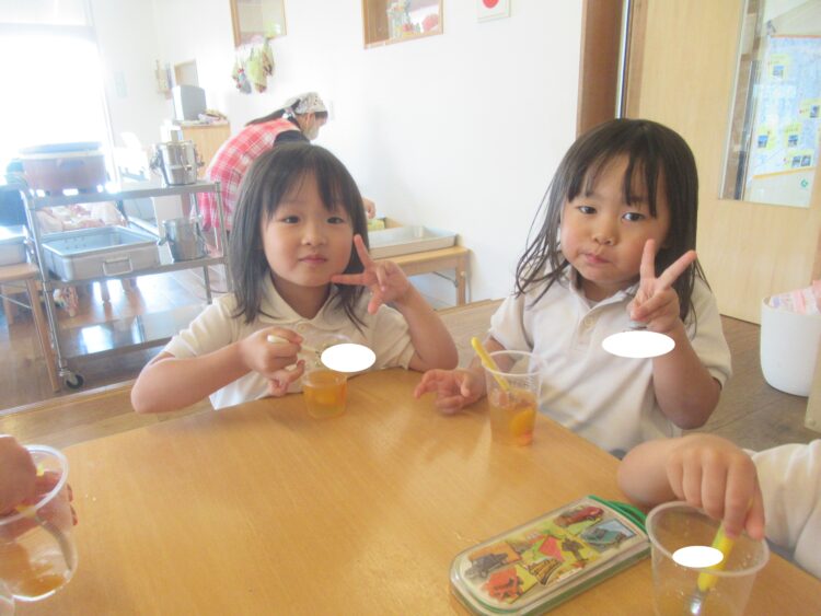 給食を食べて、お待ちかねのデザートタイム![]()