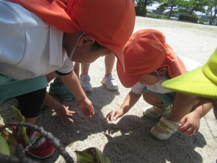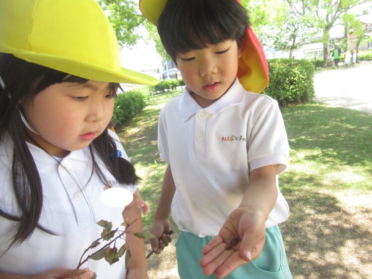 虫探しをして、いろんな虫を見つけたようです![]()