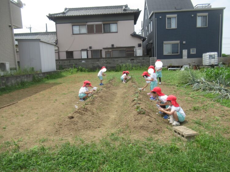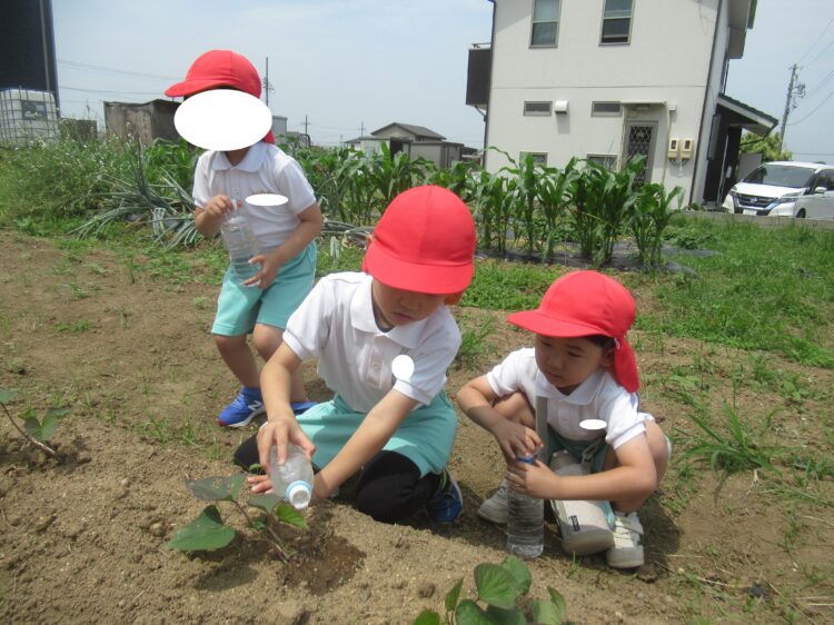 畑に行き水やりをしました