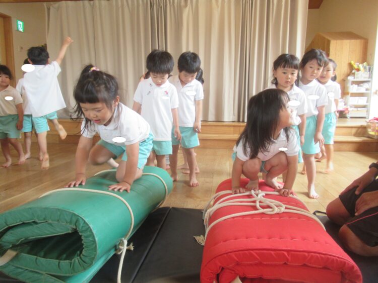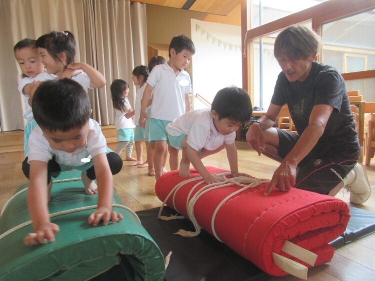 どきどきさんも挑戦!手をつく位置を教えてもらいながら、ヨイショ![]()