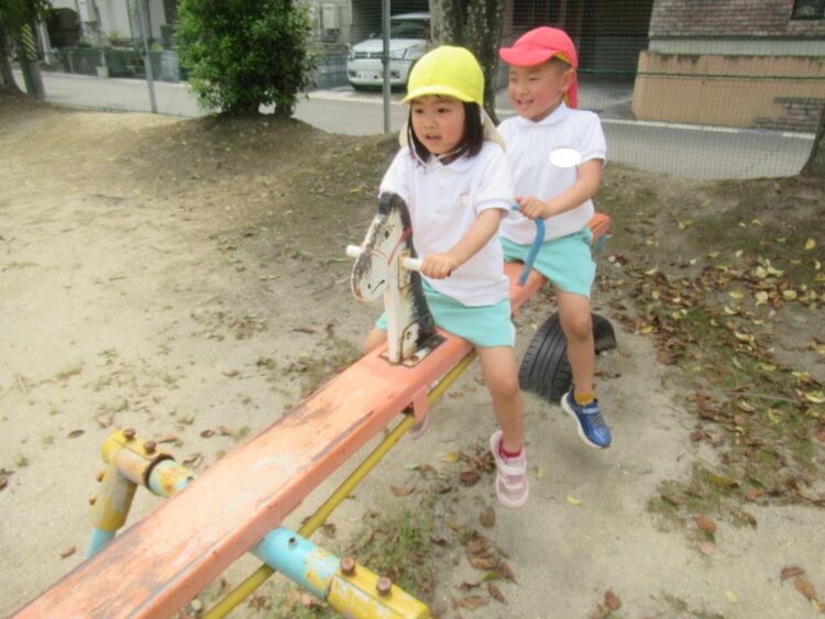 お友だちと仲良く手を繋いで散策する姿がありました![]()
