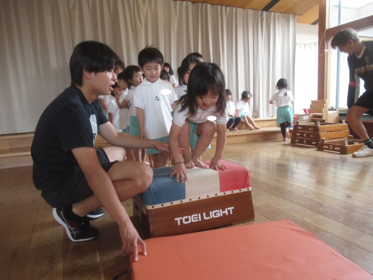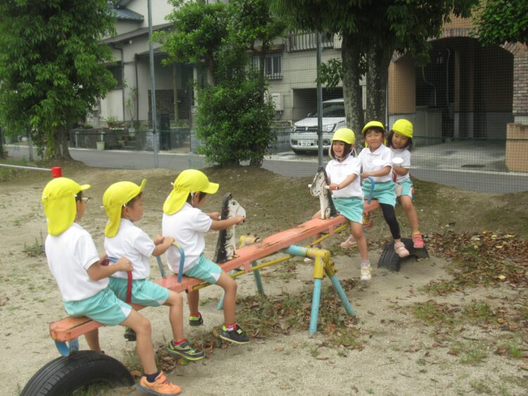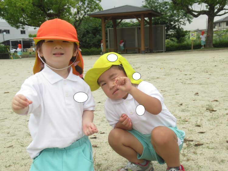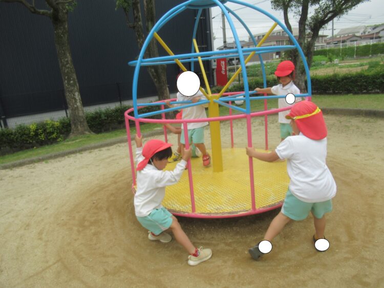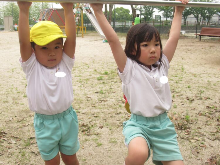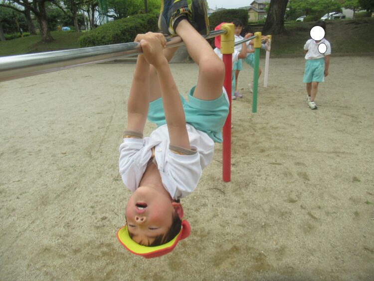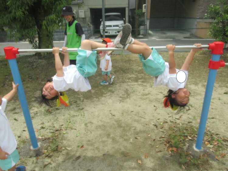 鉄棒では、ブタのまるやきやおさるさんのようにぶら下がって遊んでいました!
