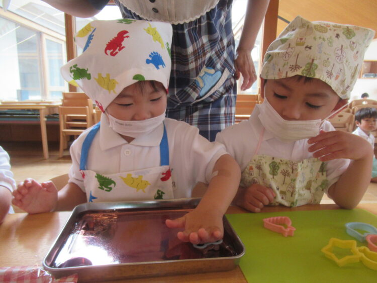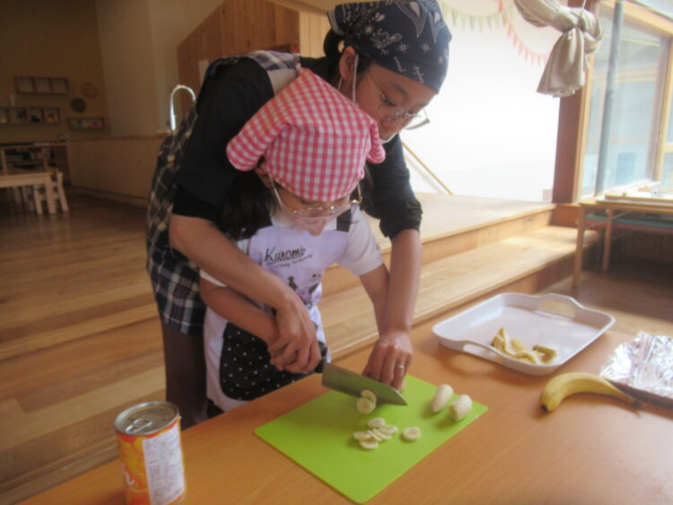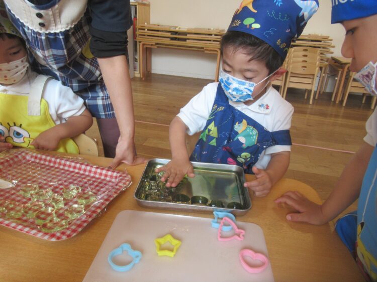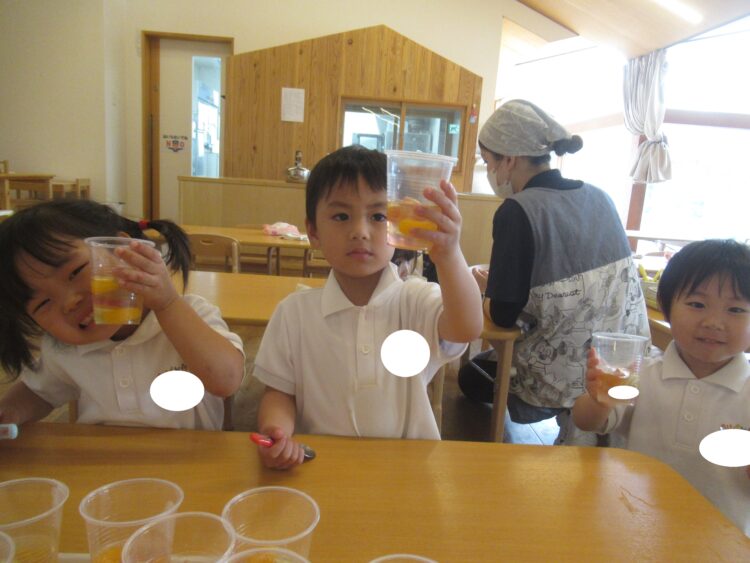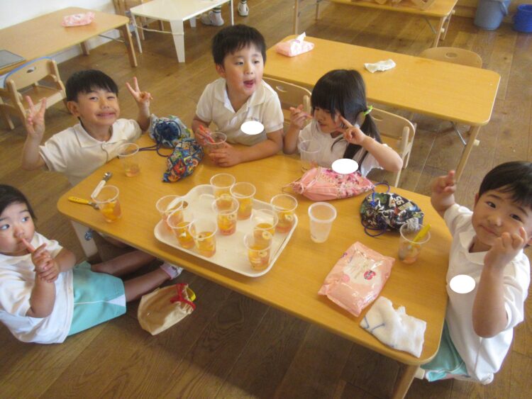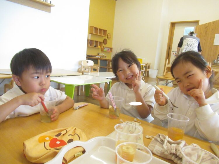 コップに自分で盛り付けて、給食の後に食べました![]()