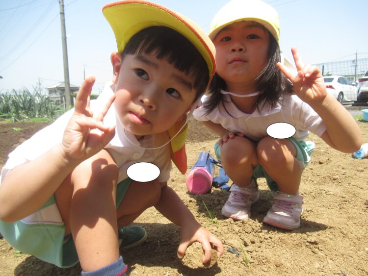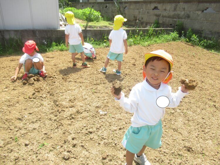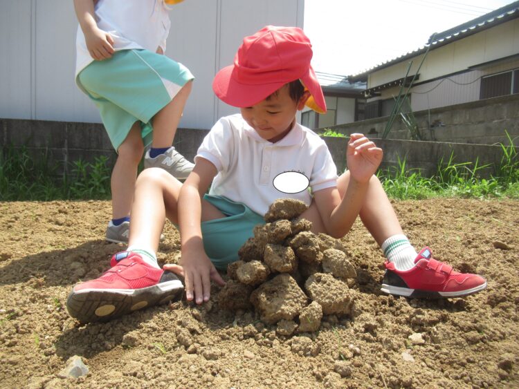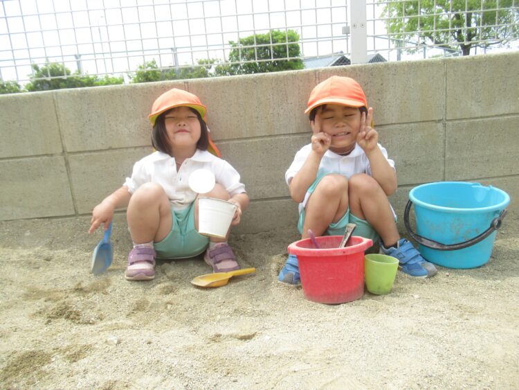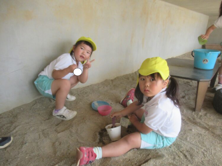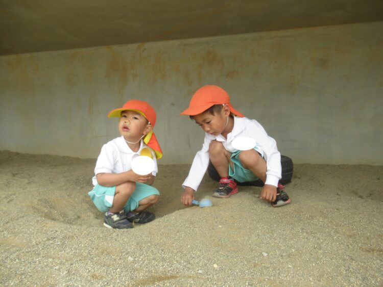 園では砂場で遊んだり、