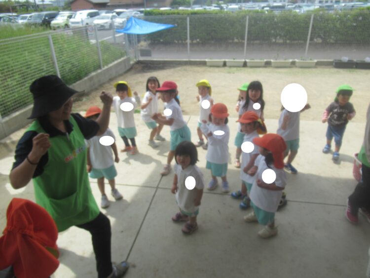 お外では先生と一緒にダンスをしたり