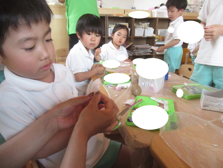 先生と一緒に製作をしたりと元気に遊んでいました