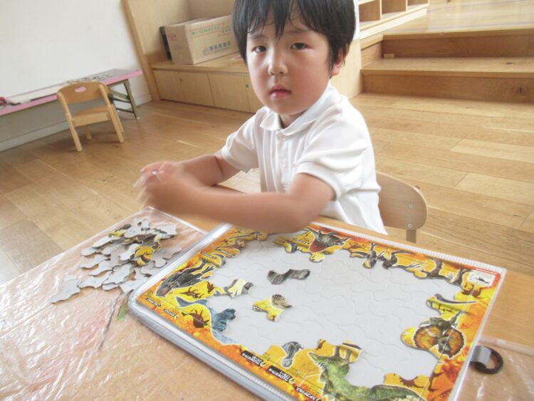 お部屋でパズルをしたり、