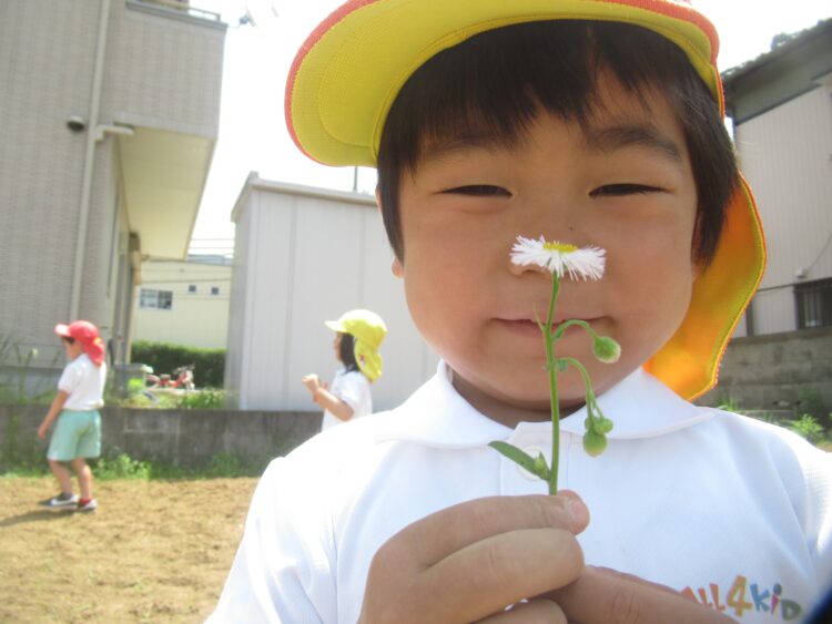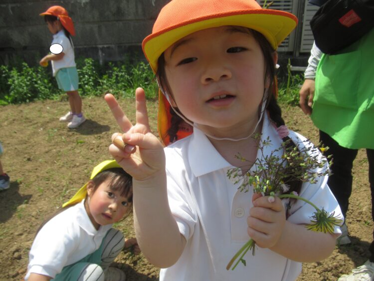 きれいなお花をたくさん摘んで花束を作っている子も!