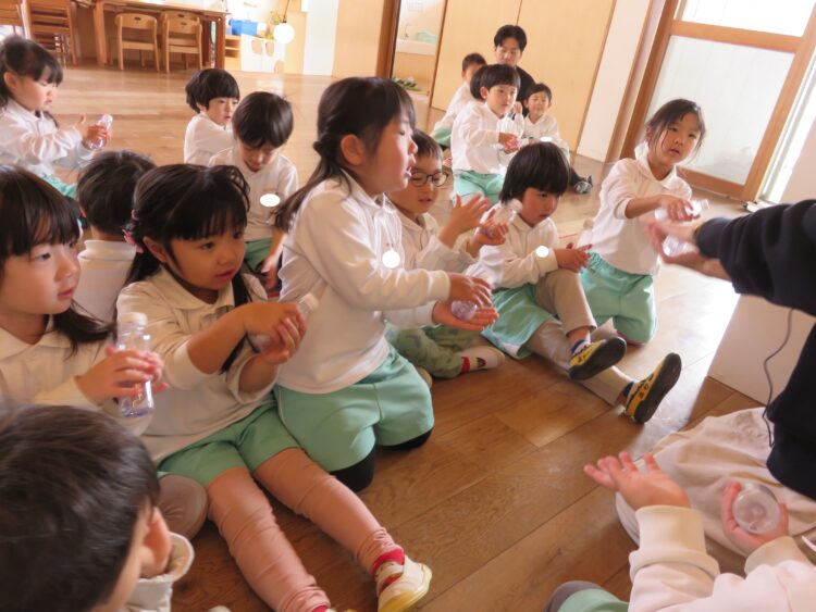 園庭ではチュウリップの水やりを進んでお手伝いしてくれた、わくわくさん![]()